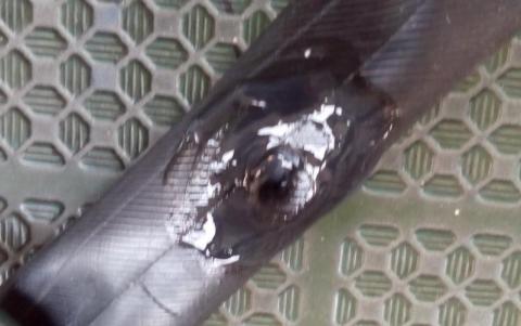 4.エアチューブの穴付近を紙やすりで軽くやすり、カスを除去する。