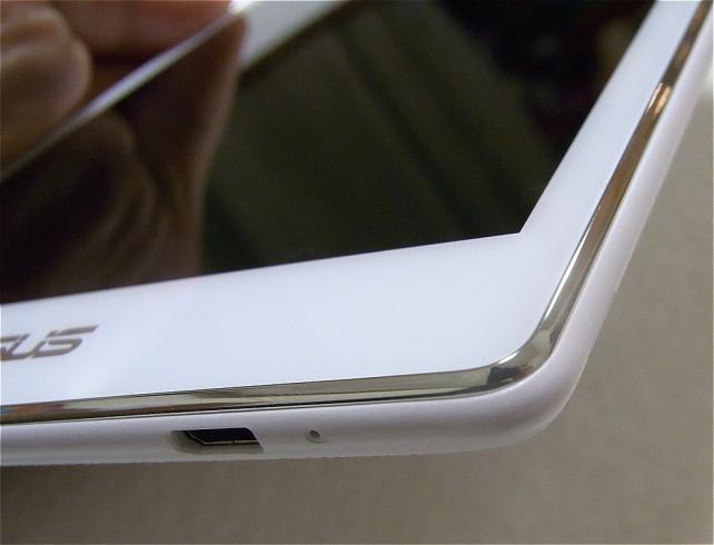 右側がmicroSDカードスロット。左側にあるのは専用アクセサリを接続する端子。ZenPadシリーズでは豊富なアクセサリが提供されている。アクセサリで自由にカスタマイズできることで他社製品との差別化が図られている。