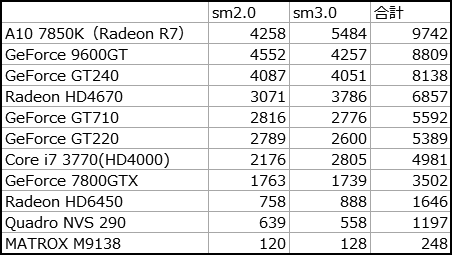 まあ上のグラフの一番上がA10なのでここに出したやつは全部上位APU内蔵に負けrげふんげふん