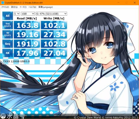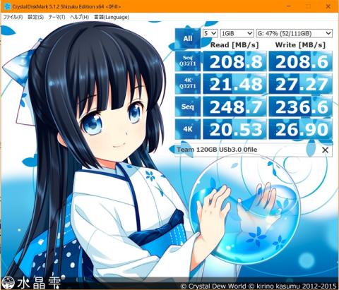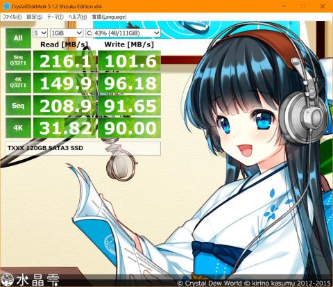 (USB3.0接続。このSSDは、どのPCに繋いでも遅いみたいです)
