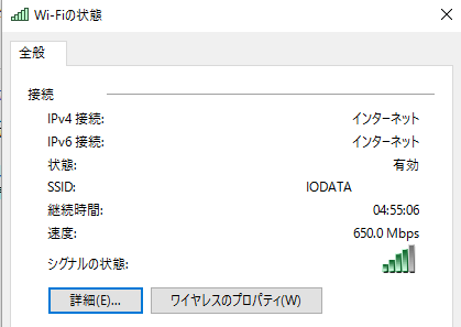これで設定のコピーが完了。デバイス側を確認してみると従来設定のままI-O DATA「WN-AX1167GR」で接続されていました。