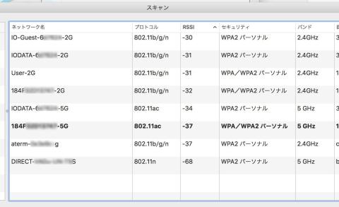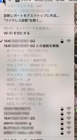 はじめに真上のiMacで計測しました。「ワイヤレス診断」appです。