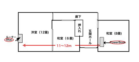 和室と玄関を挟んで10m以上離れた和室で、PowerBookPro を使用することが多いので
