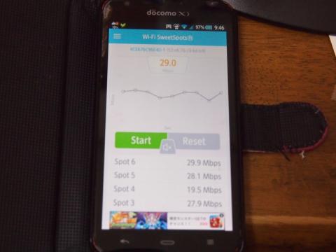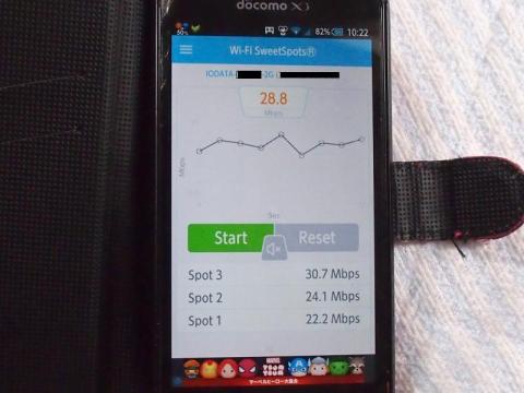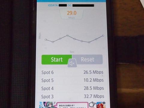 2階なのに、22Mbps~30Mbps出ています!ルーターの真上とはいえ、すごいです!