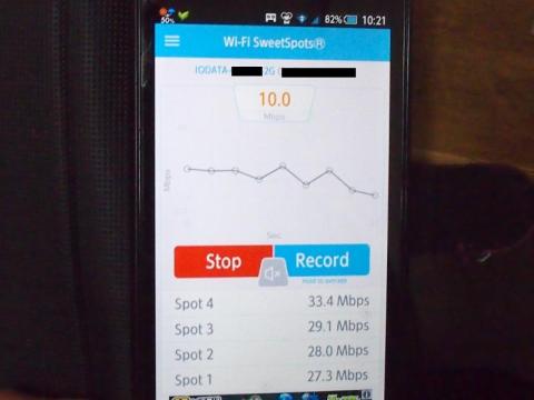 アイオーデータ WN-AX1167GRについてスマホアプリ「Wi-Fiオーバービュー360」を使って電波強度を調べてみました。