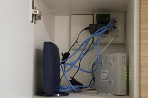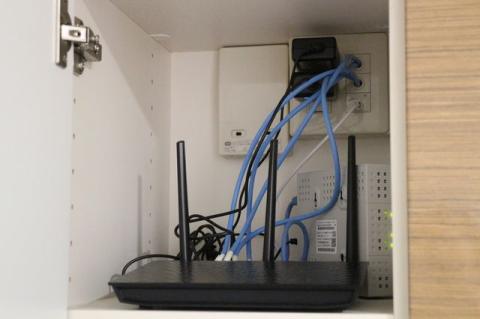 ルーター用の部屋から各部屋にはLANケーブルが通っているので、ルーターを他の場所に置くわけにもいきません。