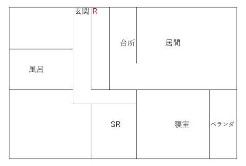Rの位置にルーター用のスペースがあります。風呂が電波状態が良くて、寝室の電波状態が悪いのはこのルーター置き場のせいなのです。