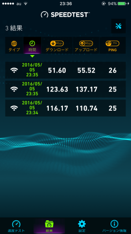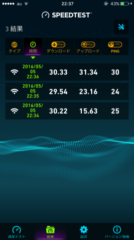 比較状況としては、Iphone5s、6、Zultraで一番無線の利用頻度と必要性の高い2F自分の部屋で普段通りの姿勢で推奨アプリのspeedtest.netで3回計測。