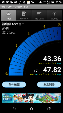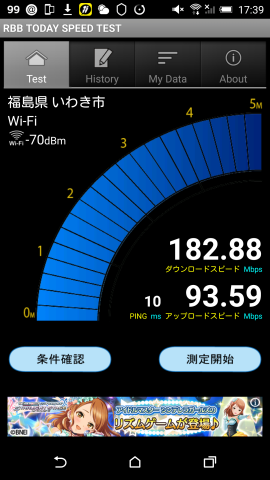 比較ではRBB Today Speed Testアプリを利用し、5回ほど測定して平均値を