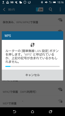 AndroidスマートフォンならWPSプッシュボタンで設定したほうが簡単