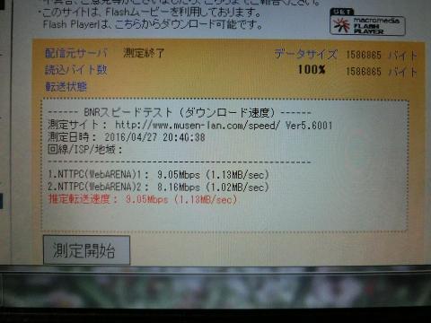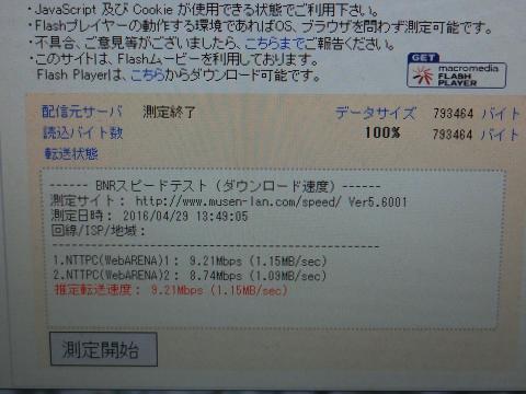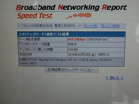 ネット上ででBNRスピードテストをやってみると、下りの推定転送速度 9.05Mbps、上りのデータ転送速度885.12kbpsと出ました。