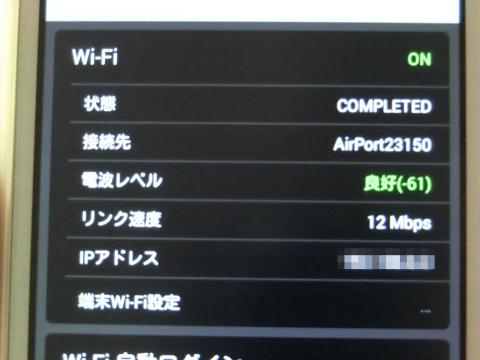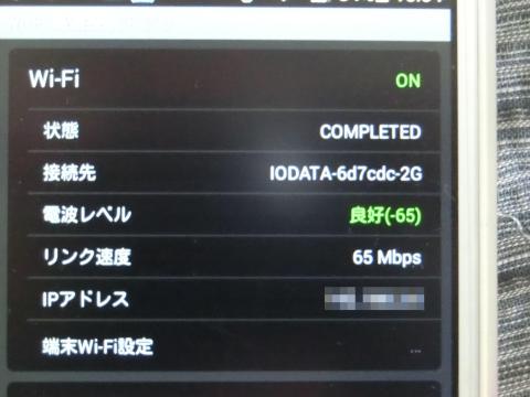 スマホのwi-fi高速接続アプリで電波の状態を確認すると、「電波レベル 良好(-65)、リンク速度 65Mbps」とありますので、スピードは上 がってるってことですね。
