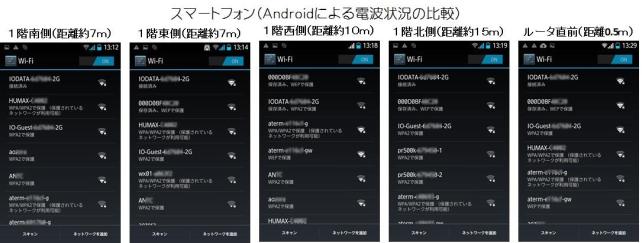 設置完了後、早速手持ちの各デバイスを使って接続性や安定度をチェック。まずは、スマホ(Android)での確認。