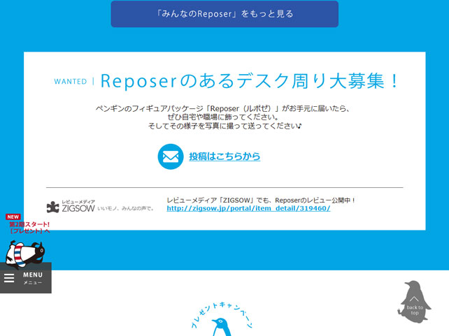 公式にすでに「zigsowでもレビュー公開中!」とリンクが貼ってあったのはさすがw