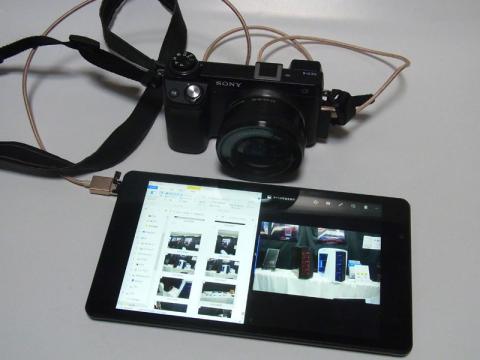 思いついたのはMicroUSBしかないWindowsタブとMicroUSBで接続することで画像の表示・取り込み(兼カードリーダー)ができるデジカメの接続。なるほど撮った画像をその場で少し大き目の画面で見れるし動画等を撮って容量が少なくなったときにタブレットに退避させることも可能だ。