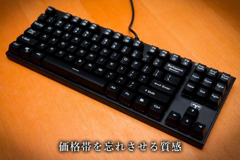 CherryMXの青軸を参考に開発された機構を採用、有名メーカー製の数万円する製品にも引きを取らない快適かつ優れた打鍵感が光る1台です。
