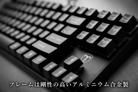 フレームはアルミ製なので質感・剛性共に優れており、かっこいい外観です。オーバーな表現は抜きに、はじめて本製品を見る人であれば、これが3000円であるとはまず思わないでしょう。キートップも本家と互換性のあるものであれば交換可能で拡張性が高く、本製品をベースにより自分自身にとって使いやすいキーボードにカスタマイズして行くことも可能です。素性が非常にいいので、手を掛ける価値も十分あるように感じられます。