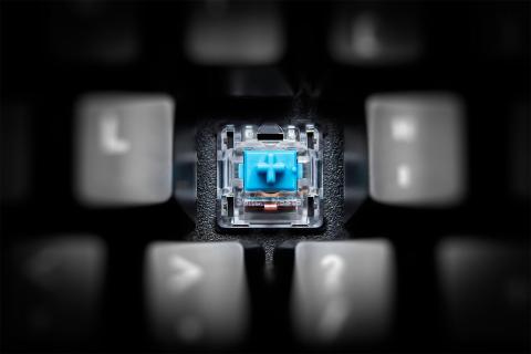 ※再現元となったCherry MX青軸同様に、本製品に採用されている青軸もまた、優れた打鍵感やカタカタという心地よい打鍵音を売りにしている。さらに押圧がCherry MX青軸を上回る60gとなっているため、タイピング時に発生する音はかなり大きく、静音性が求められる環境での使用には不向きだ。