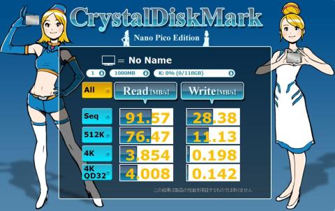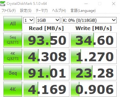 Readだけは,90MB/s以上出ています.Writeも含め,公称値以上です.
