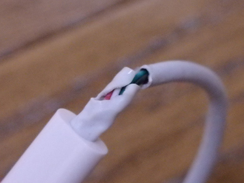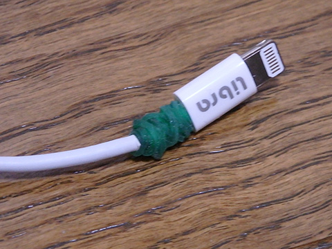 そのままでは割れた部分がもっと広がり、最終的には配線がむき出しになると思い、応急処置として輪ゴムで巻いてしまいました。