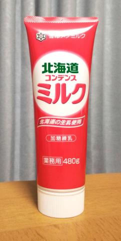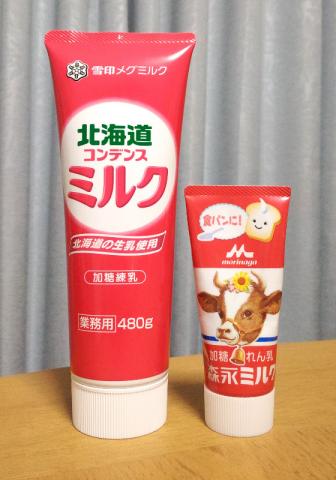 私にとっての定番は、森永の牛さんマークのコンデンスミルク。120gと並べてみました。