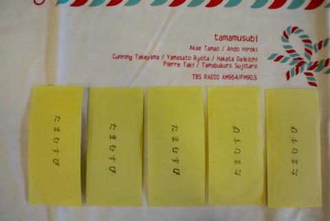 月〜金・5枚が揃ったら、TBSラジオたまむすび担当さんに郵送すると、たまむすびTシャツと