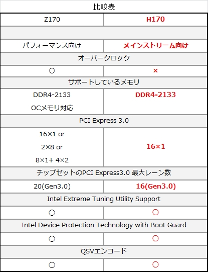 残念ながらZ170とH170では私の仕様構成では差がなく