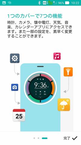 Zenfoneシリーズでは、設定の中に「ASUS COVER」という項目があります。これを有効にすることで、写真のように蓋を開けることなく、各種情報が確認できます。