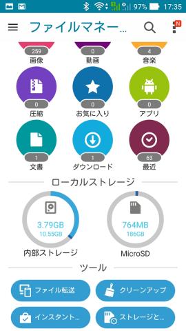 これがZenfone Goのセットアップ後のストレージの状態です。