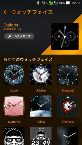 時計のフェイスを変えるのも、既にたくさんのフェイスが用意されていて、更にはPlayストアからもダウンロードができます。ただ単にフェイスを変えるだけではなく、秒針の色を変えたり、表示する情報を変更できたりします。
