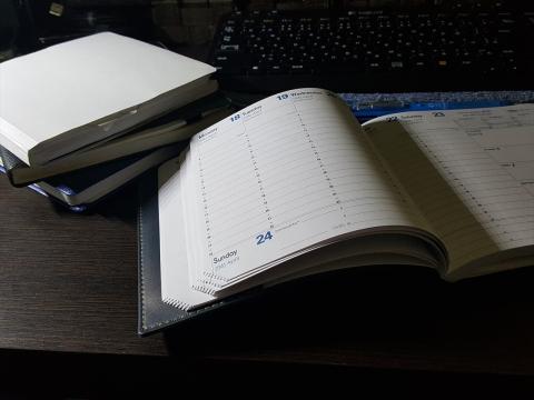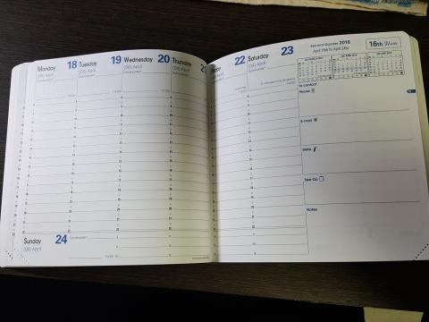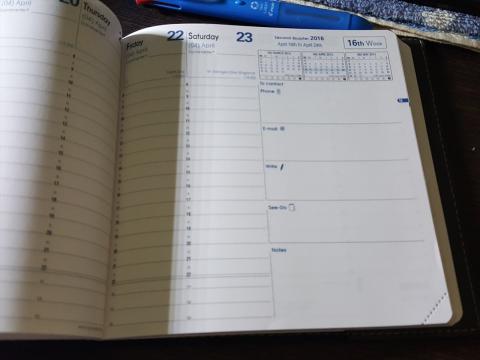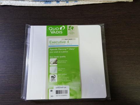 予定やメモ、会議中の情報収集などをタブレット一つでしばらく使ってきましたが、最近の情報漏えいやセキュリティの関係で、使用が制限される場所や場面も多く、タブレットにする前に使っていた、QUOVADIS製の手帳へ戻した感じです。
