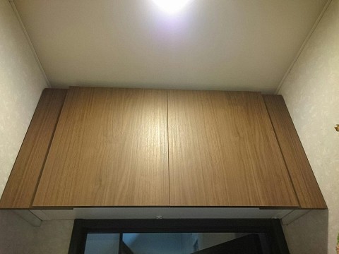 した。取り付け位置にはすでに突っ張り棚のような形で木製の棚がついていました
