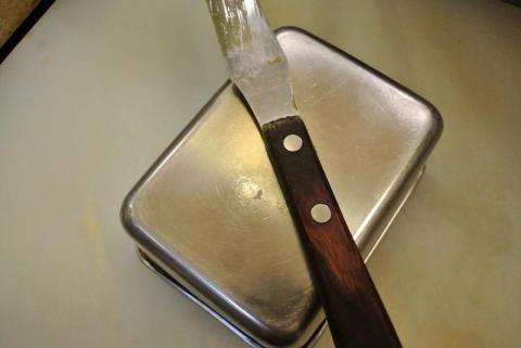 次は、辛子バターを塗り広げるのに最適なヘラ(ステンレスパレット)をご紹介します。