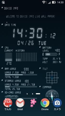 ライブ壁紙なのでその都度、今の状態を監視できるが、ZenFone2なので余裕で動いているが
