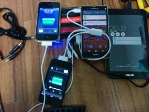 モバイルバッテリー本体にUSB4ポートに全部繋いでみたいでみました。