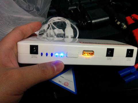 OUTPUT19Vと残量ゲージと電源スイッチ USB端子 ジャンプスターターを充電コネクター