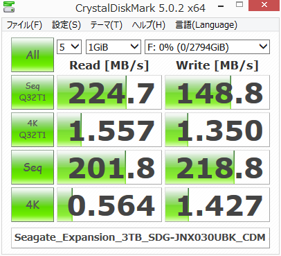 中身のHDDはSeagate製ST3000DM001でした。ほかのメーカーさんの外付けHDDにもよく入っており、7200rpmで速いですが、そのぶん発熱が多いHDDという印象があります。
