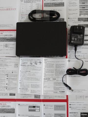 同梱品はACアダプタ(ケーブル約170cm)とUSB3.0 A-MicroBケーブル(約120cm)、保証書、TV用簡単設定ガイドです。