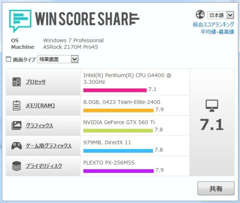 Windows7は7.9が最大値ですので、この頃のパソコンであれば高性能です。