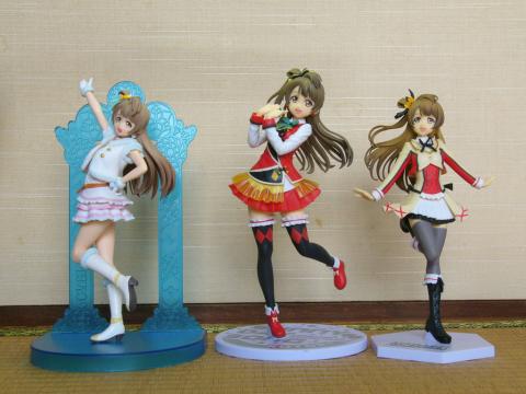 過去にクレーンゲームで取った"それは僕たちの奇跡"と"Snow halation"の衣装のフィギュアと並べて写真を撮ってみました。