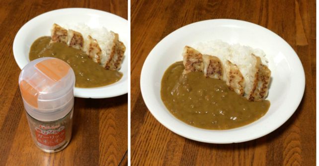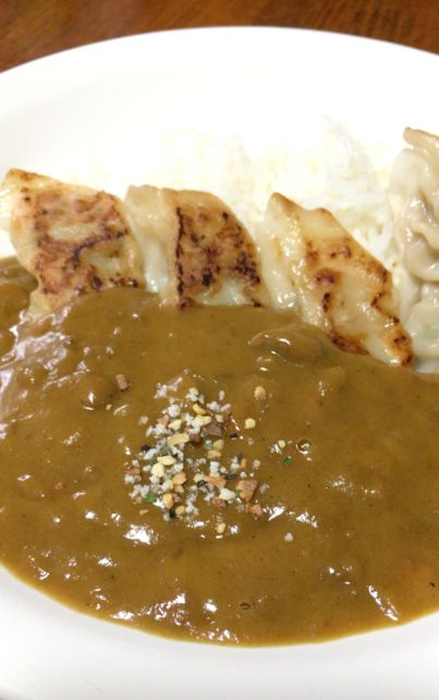 北海道でもお馴染みの「みよしのの餃子カレー」に少し振り掛けて見ました。