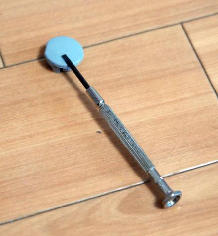 まずはプラスティックのカバーを精密ドライバーか何かでこじって取ってしまいます