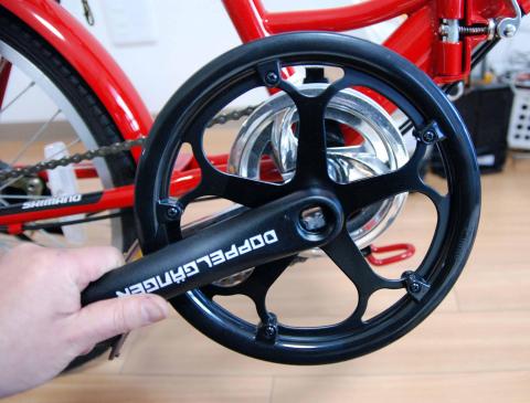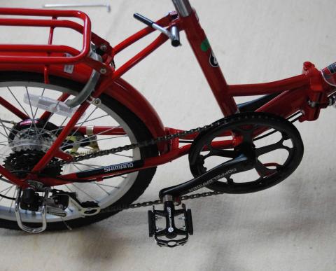 本来はタイヤ径の小さい折りたたみ自転車は、ママチャリと比較しても同じギヤ径なら一杯漕ぐ必要が生じます、タイヤの回転数が同じなら進む距離が少ないからです
