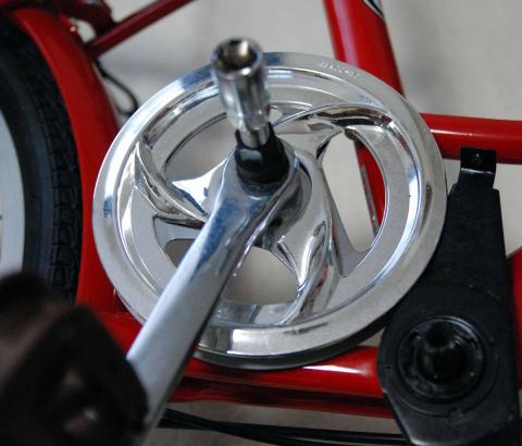 このチェーンホイールに変更するわけですが、そのためには今のチェーンホイールを外さないと行けません