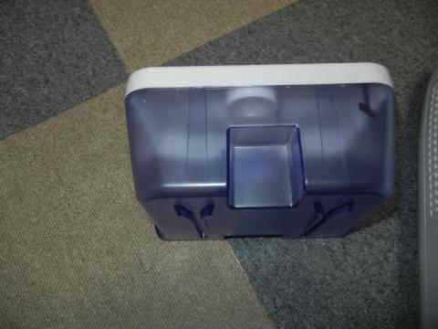 青い部分が除湿した水が入るタンクで1.5リットル容量です。