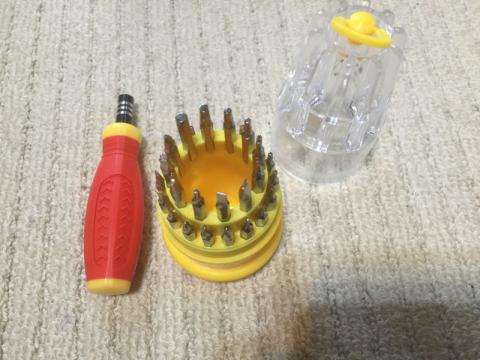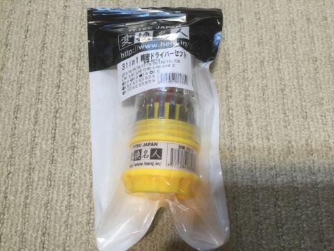 TAICHI 31の裏蓋はT5のトルクスと、ゴム足の裏に隠れているプラスネジで固定されていますので、T5に対応したドライバーが必要なのですが、私が持っているトルクスドライバーはT6以上しかありませんでした。そこで買ってきたのがこのドライバーセットです。