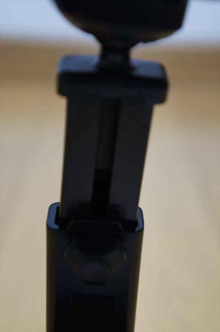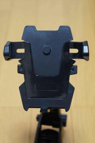 スマホをセットすると、真ん中のボタンが押され、ストッパーが閉まり、スマホが固定されます。