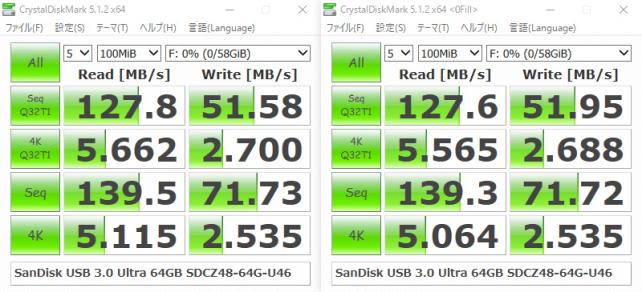 32GBと64GBの違いが有りますが、公表されているスピードが150Mb/sと100Mb/sと差が有るにもかかわらず、ベンチマークは誤差程度しか有りませんでした。