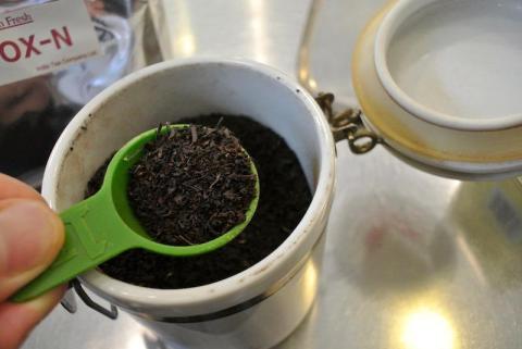 ニルギリ6に対してアールグレイ4 もしくは65:35程度の重量比で計測し、ビニール袋の中で混ぜます。