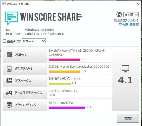 まずはWindowsScoreShare(Windowsエクスペリエンスインデックスの代わり)
